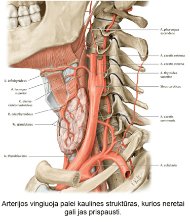 Didelė priekinių kaklo raumenų įtampa taip pat gali signalizuoti kaklo kraujagyslių konfliktą.