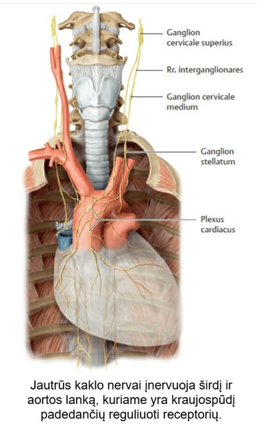 Kakle yra svarbių kraujagyslių, nervų ir kraujo spaudimą reguliuoti padedančių receptorių.
